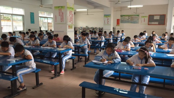 这次活动数学组以班级为单位,每班选5至10人参加。同学们安静有序地来到考场,老师分发试卷后,就开始答题。本次活动试题灵活,兼具知识性和趣味性,体现数学知识的综合应用,能提高学生的数学思考和分析问题、解决问题的能力。赛场上,有的额头冒出汗珠,不知道是紧张还是因为天气闷热;有的胸有成竹,镇定的神情好像在说这点题难不倒我的;有的在草稿纸上快速地演算,争分夺秒;有的冥思苦想了一阵,忽然眉头舒展,找到方法。在活动中同学们认真审题,细心计算,表现出良好的数学素养。