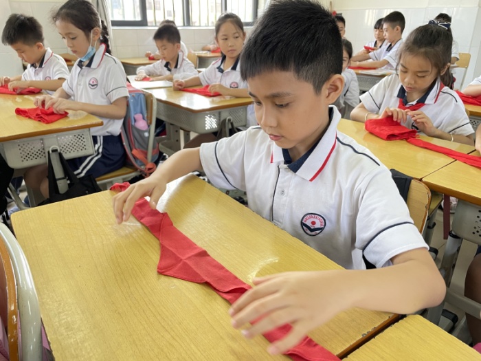 为认真开展好少先队微仪式,高家基小学各级少先队辅导员在微仪式之前,以主题队会、主题队课等丰富多彩的形式,在各班开展了少先队标志礼仪规范授课,引导高家基小学的少先队员们认识队旗、队徽,学习佩戴红领巾,练习敬队礼、呼号,熟悉队歌,誓词。