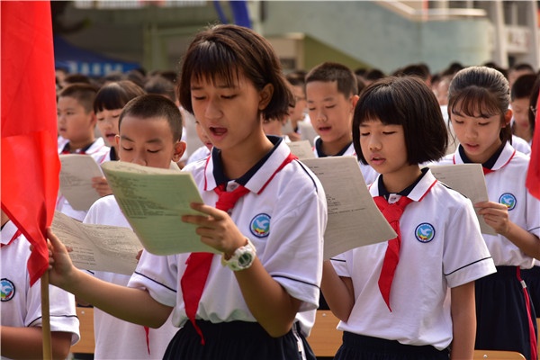 随后,全校学生为老师们诵读朗诵词。依次是初三级诗朗诵《致星空体育敬爱的老师》,初二级《奉献,是你的名字》,初一级《九月,属于老师》,最后全体学生合诵感念师恩诵词。整齐而响亮的朗诵声响彻校园,久久回荡。