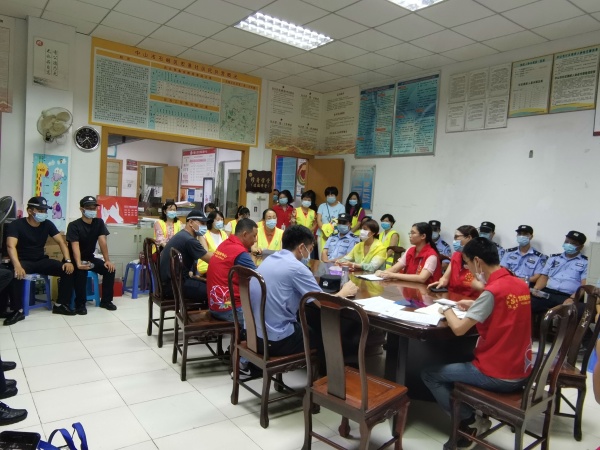 为推进全国文明城市创建工作,提高广大居民群众对创建工作的知晓率、支持率和满意度。石岐第一小学积极响应石岐区开展“创建进万家,文明大走访”主题活动。2020年7月16日晚,石岐第一小学老师们来到宏基社区与社区、派出所,以及巡警大队工作人员一起分小组走进岐乐花园小区住户家。