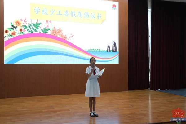 典礼的第三部分,由学校少先队大队委发出假期倡议书,倡议同学们在假期中,积极参加垃圾分类,小手拉大手,亲子共读及研学等一系列活动。书是人类进步的阶梯,她倡议同学们明礼守法、强身健体、品读经典。大队部的倡议与法制安全讲座相辅相成,同学们也更加明确了如何度过一个充实而有意义的暑假。