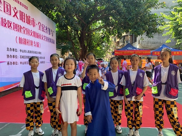 为了助推中山市创建全国文明城市的建设工作,提高群众对创文的知晓率,让创文工作深入人心,引导广大人民群众当好创文活动的宣传者、参与者,由中山市人民政府石岐区办事处主办、石岐区创建文明城市领导小组办公室协办、中山市文化馆石岐区分馆、仙湖社区承办的“创建全国文明城市?全民齐参与”文艺进社区活动于2020年7月23日上午9:00-11:30在仙湖正街的健身公园成功举办,石岐高家基小学积极参与此次文艺进社区活动,为附近居民群众献上精彩的文艺演出。
