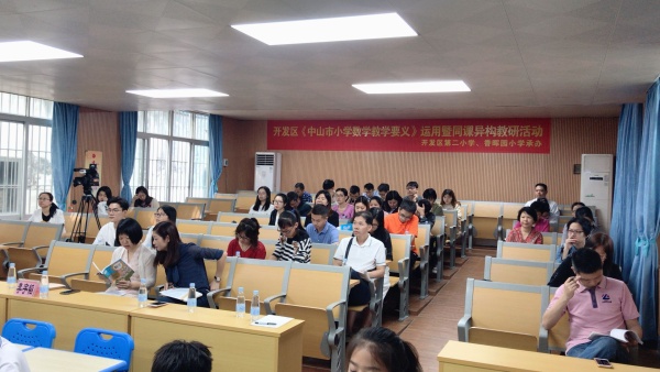 2019年11月18日上午,在开发区教育事务指导中心的指导下,由开发区第二小学和香晖园小学联合举办开发区《中山市小学五年级数学教学要义》运用暨同课异构研讨活动。本次活动邀请了李宇韬校长前来评课,为开发区同课异构增添色彩,给予全区五年级老师专业指导。