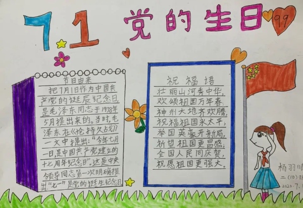 同时,学校还举行了“我爱您,中国”诵读活动和“我爱您,中国共产党”手抄报征集活动,学生通过诵读和绘画的方式,表达自己对祖国的热爱之情。通过这次内容丰富、形式多样的教育活动,让少先队员们更加地爱党、爱国,坚定了学生“从小学先锋,长大做先锋”的信心,激励学生担当好传承红色基因的政治责任、历史责任。