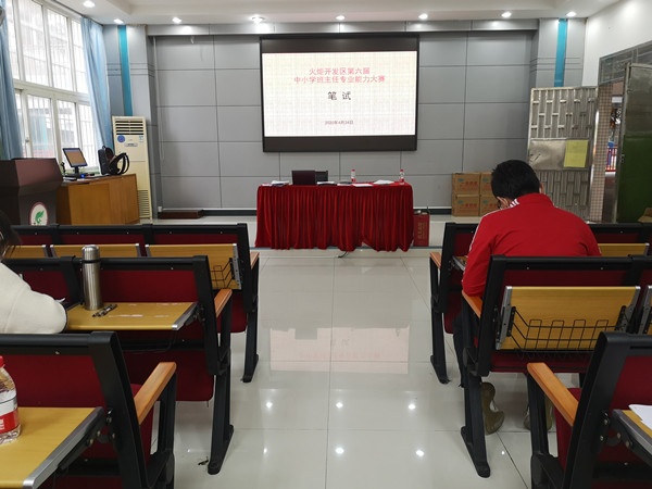 4月23日下午,全区参赛教师通过钉钉直播的形式,同一时间获取“成长故事叙述”的主题——以“我的反思”为主题,用故事形式叙述身为班主任与学生之间共同成长的思与变,参赛教师在规定时间内撰写文稿并录制视频。4月24日,参赛教师齐聚在开发区中心小学电教室,隔开距离一人坐一排,有序而又紧张地进行了笔试环节。