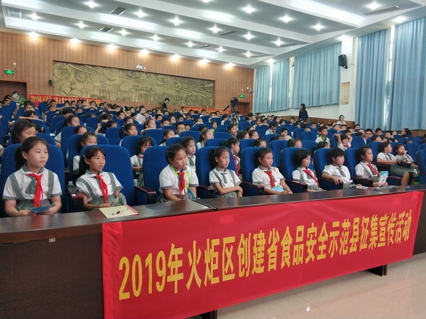 随后,一场精彩的食品药品安全知识讲座在学校一楼报告厅召开。中山市市场监督管理局火炬开发区分局工作人员何丽华担任本次讲座的主讲人,她为师生介绍了火炬开发区在申报“全民创建广东省食品安全示范县”中所做的努力以及所取得的成果。讲座上,她根据小学生的特点,采取广大小学生及儿童喜闻乐见、乐于接受的方式,通过丰富多样的宣传教育途径宣传重视食品安全的目的和意义;她精心挑选了孩子们可能会喜爱和购买的食品进行了图片展示,生动形象地讲解了为何不能吃小摊点的食物、“三无”食品的具体含义等。建议学生们要均衡饮食,少吃烧烤、快餐及腌渍类食品。同时,又向学生们讲解了一些常见的用眼卫生知识。整个授课过程中,课堂气氛活跃,孩子们踊跃参与。最后,参加活动的全体师生一起在现场合影留念。