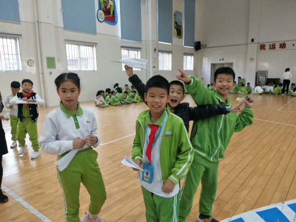 本次纸飞机比赛使用标准A4纸制作模型,纸张能折叠、适当剪裁、胶粘、涂色,但不能悬挂重物或者填装其他物品。赛前,在老师和家长的指导下,同学们已经研究了纸飞机的飞行原理,进行过无数次的改进和试飞,为的就是让手中的飞机能飞得更远更高。早在上周,各班已经在班上开展了纸飞机比赛预赛,并且选出了四名参赛选手,经过一周的探索与改进,各班参赛选手带着满满的自信,踏入了体育馆。
