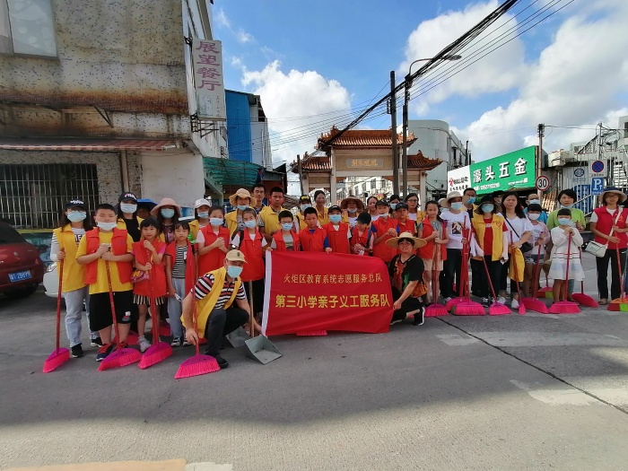 据悉,自7月份以来,开发区第三小学开展了多次志愿者活动。不管是深入村巷逐家逐户进行派发宣传资料,还是清理轻轨中山站前卫生死角,志愿者都踊跃报名,积极参与,入社区,接地气,传递社会正能量,开发区第三小学全体师生以实际行动,为积极响应市创建文明城市活动增光添彩。