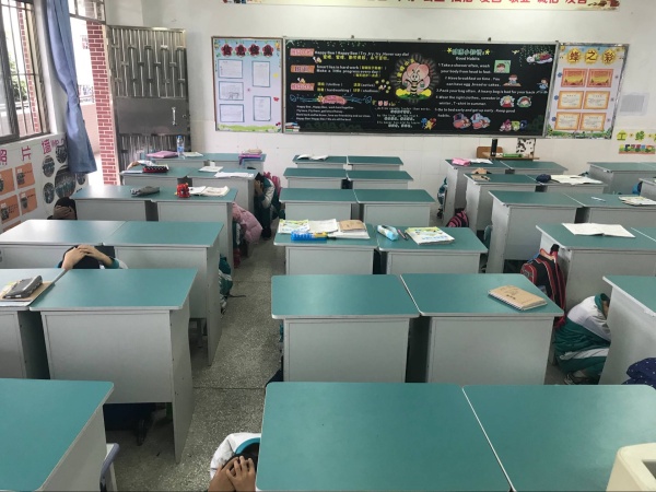 上午8点40,防震演练开始,第一次警报响起,主抓安全教育的黄主任通过哨声下达开始防震紧急疏散逃生演练的命令后,班主任组织学生进行室内防震自救演练。1分钟后,第二次警报响起,班主任立即组织学生进行疏散逃生演练,组织本班学生排队,听从楼层负责人指挥,按疏散路线指导学生有秩序地迅速撤离;各成员按分工要求,在指定位置,积极做好疏导工作,300多名师生全部安全撤离到操场上历时不到1分钟。