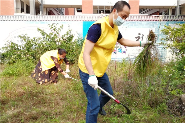 为迎接即将到来的2020年春季学期第一批初三返校学生,4月21日,火炬区一中17名党员志愿者教师,在校党支部组织委员、总务处主任谢维中的带领下,冒着炎热,来到学校北门外进行校园清洁活动。