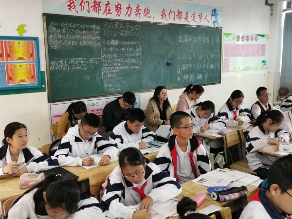 开平教育同仁不顾长途劳累,一下车,分科组,便走进开发区一中的课堂,分别听了郑泽梅老师的《分式的乘除法》初二数学课、高东霞老师的《unit 8》初二英语课、黄慧老师的《北魏政治和北方民族大交融》初一历史课、周四文老师的《建设法治中国》初三道德与法治课、钟朝晖老师的《二氧化碳的性质》初三化学课、刘华利老师的《校园写生或(水墨肌理)》初二美术课、黄俊杰老师的《鉴赏沃尔塔瓦河》初二音乐课。