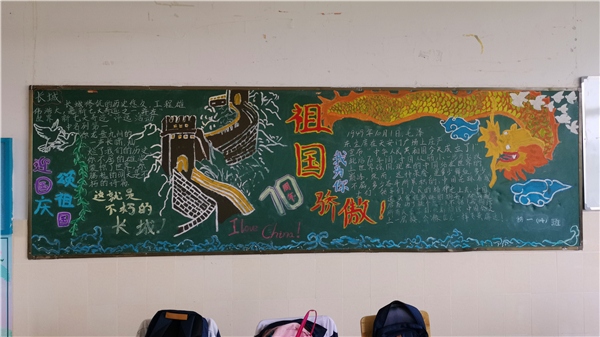 又是一年开学时,新学期经过两周的磨合,开发区一中的学生们逐渐找回了专注的学习状态,开始自治、自学、自评的在校生活。正值中华人民共和国成立70周年,为了开展广泛的爱国主义教育,提高初中生对祖国的认同感、自豪感,促进初中生增强爱国意识、养成良好习惯、培养高尚品质,开发区一中举行了以“我和我的祖国”为主题的班级黑板报评比活动。