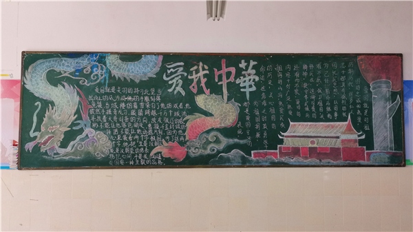 只见各班级的精彩黑板报,或色彩丰富、图文并重;或故事感人、文稿长短轻重相联;或设计大气、标题富含深意。各班级的创作可谓特色鲜明。在多个班级的黑板报中,看到红旗、中国龙、天安门的元素大量出现。运用这些元素,是对祖国文化、历史的认同,深刻地体现了开发区一中学生的爱国情、报国志。本次黑板报评比活动,达到了预期的效果,取得圆满成功。