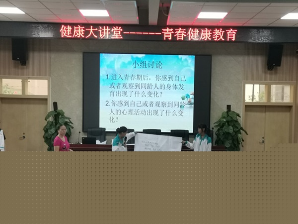 在解释完什么是青春期这个大问题后,陈老师进行了小组讨论,她设置了两个问题:1.进入青春期后,你感受到了自己或者观察到同龄人的身体发育出现什么变化?2.你感受到自己或者观察到同龄人的心理活动出现了什么变化?一时间各个小组都沸腾了起来,大家争相发言,纷纷就上面两个问题展开了发言,有的同学说感觉自己的个子高了,有的说感到自己的声音粗狂了等等。