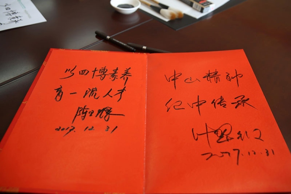 会后,陈玉琨教授亲笔为纪雅学校题词:以四博素养,育一流人才;叶校长则为纪雅学校题词:中山精神,纪中传承。
