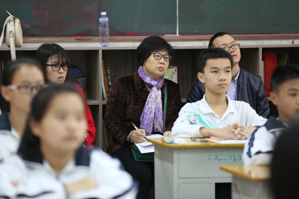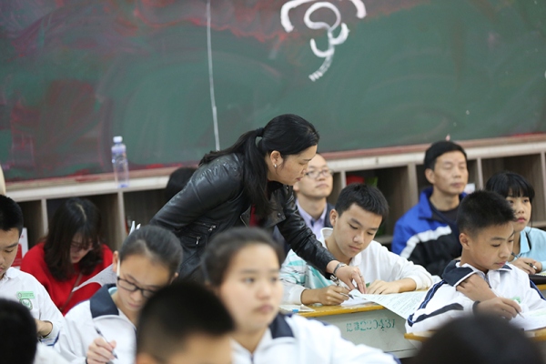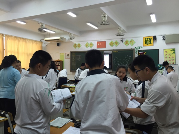 研讨活动首先由纪雅学校的向兰老师开展了一堂地理中考复习展示课。课堂中,向兰老师充分利用小组合作学习开展教学,师生互动、生生互动贯穿整节课。与会人员在研讨会上对向兰老师的展示课进行了点评,高度赞扬了向兰老师的复习课堂,认为目标明确、高效、设计精巧,带领学生非常全面地对地理中考考点进行了有效的复习。与会的老师一致肯定了“小组合作 双模合一”教学模式在中考复习教学中的优势,纷纷表示要将听课所学,再结合各自学校学生的实际情况,有效展开地理中考的复习。