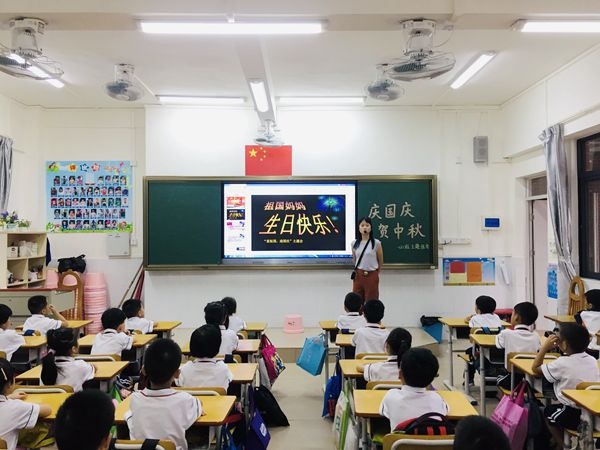 上课铃声响起,石岐高家基小学举行了庄严的升旗仪式,五星红旗在高家基学子嘹亮的国歌声中缓缓升起。升旗仪式结束后,各班有序地回到教室,开展“庆国庆 迎中秋”的主题班会。