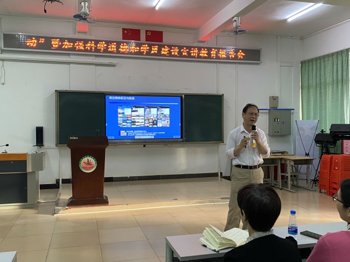 10月19日下午,金风送爽,水碧山青。中国科学院自动化研究所研究员卢汉清教授,为北区中学初二级学生送来2020年中山市“中国科学院老科学家演讲团进校园活动”暨加强科学道德和学风建设宣讲教育报告会。北区中学赵翠颜校长、博爱小学虞彩花校长出席活动。