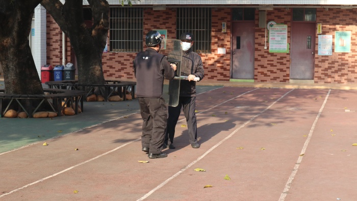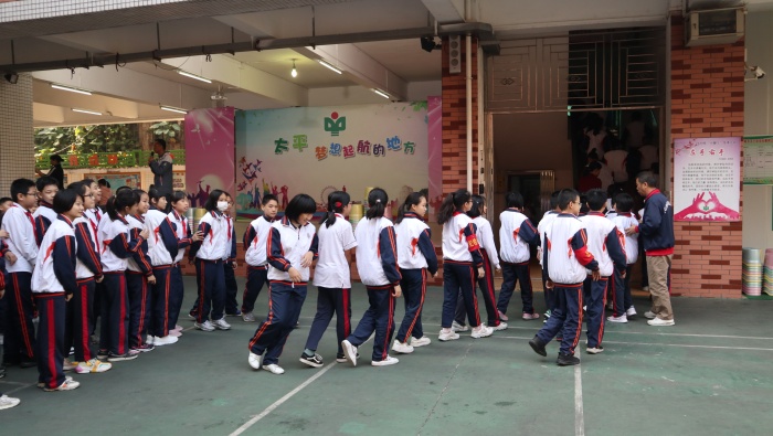石岐太平小学一直把学生的安全摆在首位,借助复习动员会议的最后,潘杰主任顺势和该校学生进行了防暴安全演练,逐班解说了疏散的方法和注意事项,各班同学在班主任和副班主任老师的指引下有序撤离,回到教室。回到教室后按要求进行相关的关门窗的工作。