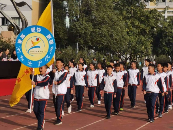 开幕式上,伴随着铿锵有力的《运动员进行曲》,裁判员代表队、各校运动员代表队依次入场。第一城小学的运动员们昂首阔步,迈着整齐的步伐,个个精神饱满、神采奕奕,脸上洋溢着自信的笑容,展现了青少年朝气蓬勃的精神风貌和“健康向上”的体育精神。