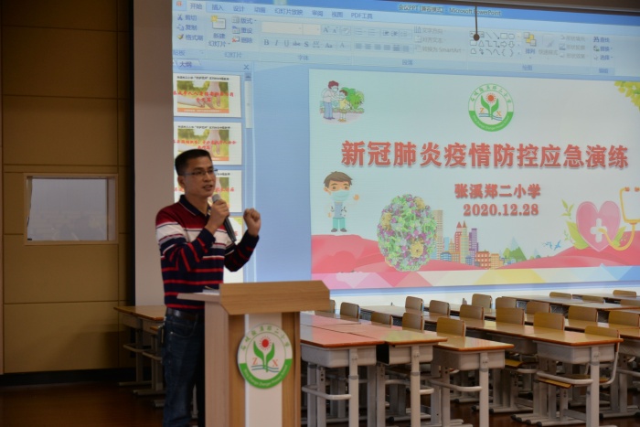 活动伊始,李振华副校长在教师会议上强调目前新冠肺炎国际上的疫情形势依然非常严峻,近期,全国各地也零星出现疫情反弹的现象,为了切实提高本校疫情防控的应急处置能力,李振华副校长带领全体教师再次学习新冠肺炎疫情防控知识,包括防控核心、防控之策、应对之策等基本知识。接着,就校园常规情景进行现场演练,全体教师也进行了互动学习。在老师们精彩的解答后,李振华副校长也作出了细致的补充。老师们认真倾听,积极参与互动、交流,展现出张溪郑二小学教师的良好面貌。