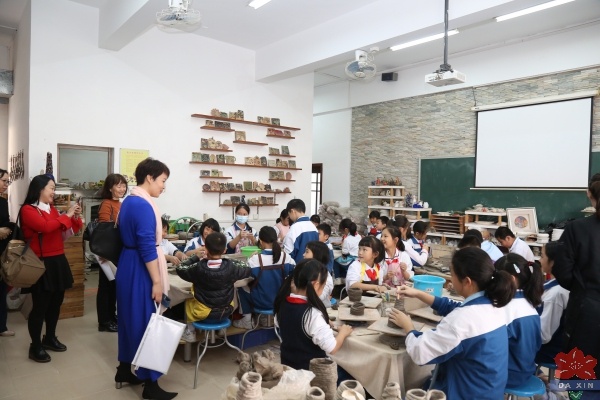 随后,评估组专家、领导查阅了相关资料,走访了校园。参观了学校陶艺馆、图书馆、修身学堂、演艺厅等场室,观摩了武术表演、古诗新唱、民乐合奏,深入陶艺、剪纸、国画社团活动课堂,了解大信学校中华优秀传统文化教育实践情况,并对学校传统文化特色课程建设赞不绝口。