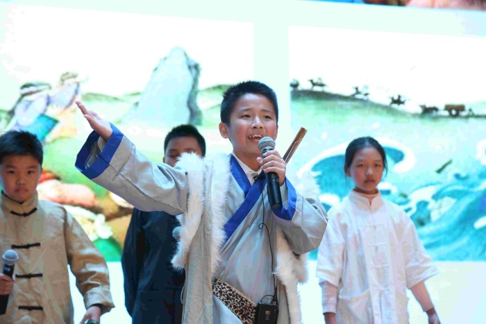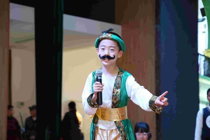 五年级民间故事展演,孩子们在舞台上诠释了中国古代民间故事的魅力。《沉香救母》让人动容;《狸猫换太子》《牛郎织女》《猎人海力布》《阿凡提的故事》《西门豹治邺》扣人心弦……