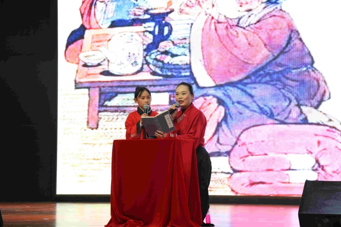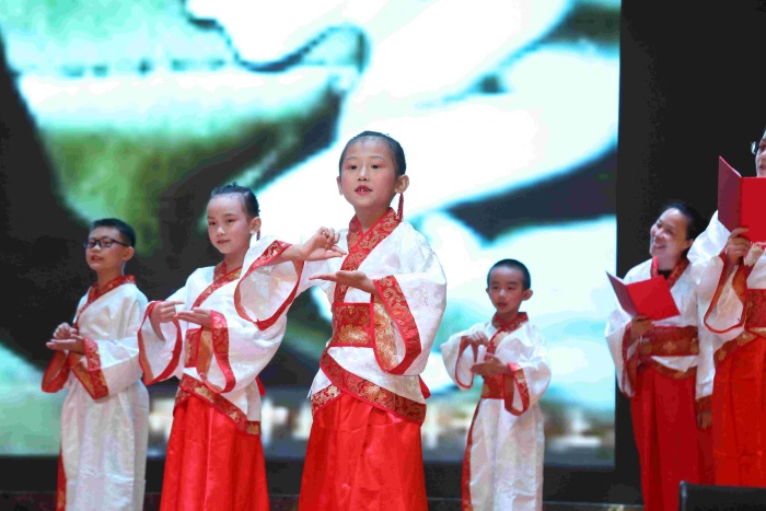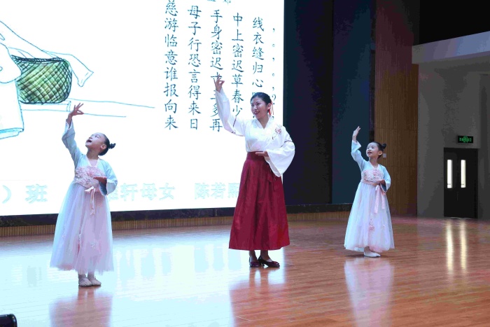 二、三年级的亲子诵读展演异彩纷呈。孩子和爸爸妈妈一起,通过亲子共读、亲子共演、亲子共诵、亲子共吟等多种形式,展现了浓浓的亲子阅读氛围,表达了对中华优秀传统文化的热爱之情。《中华少年》《我和我的祖国》《厉害了我的国》《出塞》《敕勒歌》等节目气势如虹;《春》《爱与梦想》《再别康桥》《中华孝道》《在一起》《逆行者》等节目温暖感人……