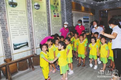 小朋友们在库充侨乡人文历史展览馆参观,这里同时也是库充经联社新时代文明实践站。