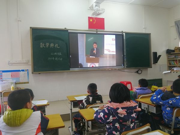 在结业典礼仪式上,校外辅导员陈远华叔叔为同学们宣讲交通安全知识、网络游戏、交友注意事项及相关法制知识;并叮嘱同学们在寒假期间注意交通安全及防溺水安全等,加强自我保护意识。