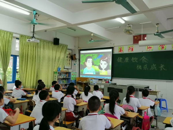 为引导学生树立健康饮食观念,养成良好的饮食习惯,提高学生营养健康水平,促进广大学生健康成长,石岐第一小学在6月8日利用班会课组织全校学生观看了《中国膳食指南》宣传片。