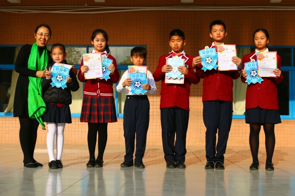 庄严的升旗仪式之后,六1班童亮同学作为本届校长足球杯最佳射手代表讲话,分享在本次体育节足球赛活动中的成长。接着,由李晓瑛副校长宣读体育节获奖名单,并进行了颁奖仪式。李校长先为获得足球赛的团体颁发奖项,有新秀班、季军班、亚军班、冠军班,孩子们为所获得的荣誉而自豪。后为在足球赛中表现突出的最佳射手颁发奖项,丰硕的成果让孩子们响起阵阵欢呼声。跳绳比赛也是本次学校体育节活动的重要项目,各个年级的班级都进行了比赛。鄂艳霞校长和梁小玲副校长为获得一等奖和二等奖的班级颁发奖状,也为各年级前十名的优秀学员颁奖。回顾本次体育节的比赛,许多精彩的瞬间令人动容,绿茵场上同学们挥洒汗水,为班级荣誉拼尽全力。