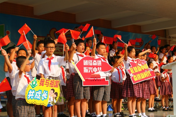 为深入开展“不忘初心,牢记使命”主题教育活动,迎接中华人民共和国成立70周年,9月30日上午,石岐第一小学举行了“礼赞新中国·奋进新时代”庆祝中华人民共和国成立70周年主题升旗仪式。全体师生齐聚学校旗台前,参加升旗仪式并唱响中华人民共和国国歌《歌唱祖国》《我和我的祖国》。