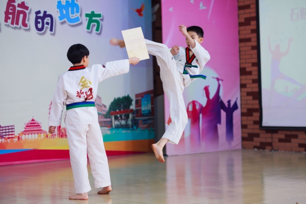 接下来是古典舞《大鱼海棠》,小品《我的未来不是梦》,合唱《东方之珠》,舞蹈《隐形的翅膀》,小提琴《沂蒙山》等节目陆续登场。四(2)班同学表演的舞蹈《天竺少女 太平脚丫》把比赛活动推向了高潮,女演员们曼妙的舞姿和男演员奔放的街舞完美地融合在一起,充分展现了太平小脚丫的新时代风貌。最令台下观众称口叫好的是五(1)班、四(1)班和二(2)班代表联合表演的跆拳舞——《武动青春》。演员们深厚的跆拳道基本功和眼花缭乱的高超表演技巧,折服了台下所有的观众。大家聚精会神地观看着演出,鼓掌声、叫好声,声声不断,摄影师们“咔嚓咔嚓”地记录着每一个精彩的镜头……