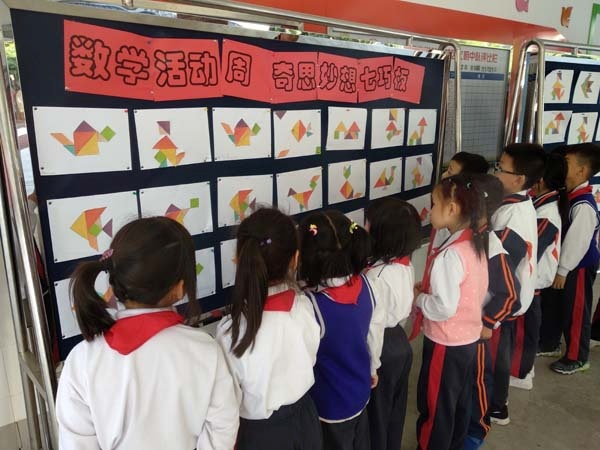 据悉,该校还根据各年级的学生特点,在数学周里设计了创意拼搭、奇思妙想七巧板、用手估测长度、24点大王、数独等形式多样的趣味数学活动。一年级的孩子开展创意拼搭活动,寻找生活中的物品,进行有趣的拼搭,同时感受长方体、正方体、圆柱、球四个物体的特征,加深对物体特征的理解。二年级的孩子开展奇思妙想七巧板活动,每人准备一副七巧板,拼出指定的有趣图案,最后按拼法在轮廓图上用尺子铅笔进行画分、分解。通过七巧板的拼摆、绘制,孩子了解到七巧板这种古老的数学拼图游戏,体会了数学的无穷乐趣。此外,每天课间活动时,三年级的孩子们则用手估测出1厘米、1分米、1米或一些图形的长度,积累了用“身体尺”测量活动经验,培养孩子们的创新精神和应用意识。四、五年级的孩子们开展了“24点速算”趣味比赛活动,活动中采取了个人擂主赛,采用积分淘汰制,比赛中凸显了小选手的灵活机智;团体赛中,各个代表队队员群策群力,在体验方法多样化中彰显了智慧。六年级的孩子开展了“数独等你来玩”的活动,题目从四宫到九宫,难度逐渐增加,孩子们沉着冷静,积极思考,认真作答,安静的赛场紧张而有序。各项比赛结束后,经过老师们的认真筛选,本次活动周的一、二等奖新鲜出炉!