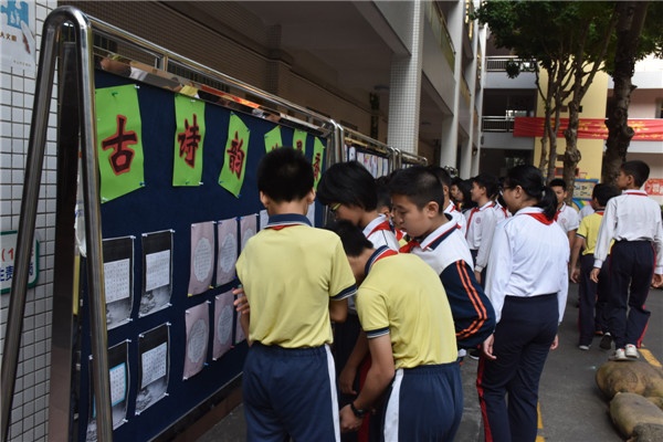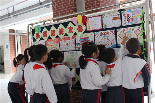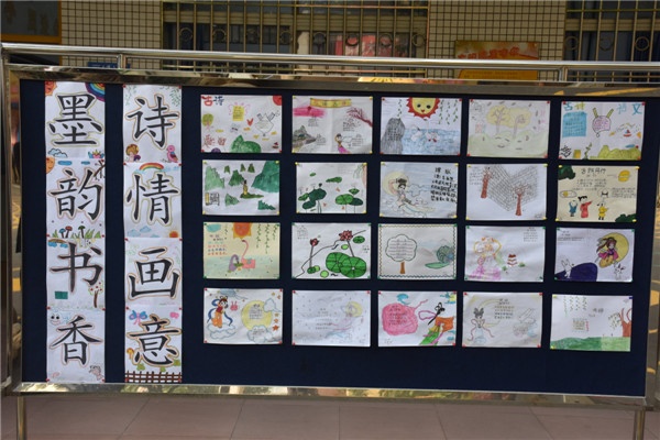 校园里的靓丽展板吸引了不少同学驻足观看。在老师们的精心指导下,二年级同学制作的传统文化手抄报图文并茂,引来一批又一批同学津津有味地品味;三四年级同学的古诗配画作品精彩纷呈,同学们在诗情画意中反复品评、流连忘返;五六年级同学的获奖书法作品展览展示了各班书写能手的风采,同学们在观赏比较中找到自己的差距,也找到了学习的榜样。