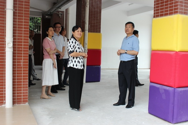 在该校杨翠萍校长、欧玉旋副校长等行政的陪同下,黄桂光书记一行先到西厂校区,之后又马不停蹄赶到该校岐江校区。每到一处,黄书记都认真察看学校周边环境,了解交通情况,询问有无存在安全隐患;巡视校园每个楼层,查看学生学习条件、老师办公条件,了解还有什么困难亟待解决。何委员、彭局长对该校两个校区的情况非常熟悉,他们曾多次来到学校调研,何委员、彭局长向黄书记介绍了各自了解的情况,杨校长也一边带路一边介绍。本学期,该校两个校区共有32个教学班,学生1400多人,班级和学生人数较多,虽只有一套行政班子,但全体行政不畏困难,齐心协力,开学前早早回校,多次开会商讨,提前做好详细的工作规划,因此两个校区开学第一天师生精神面貌良好,秩序井然。良好的开局也得到领导的一致赞许。