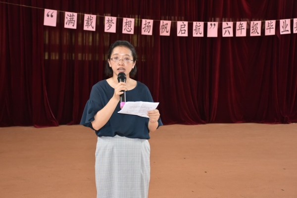 在典礼上,该校杨翠萍校长为全体毕业生作了热情洋溢的讲话,向学生们提出了殷勤的期望。她希望全体毕业生勤于学习,善于创新,努力成才。年级组长朱丽飞代表六年级全体师生给学校赠送了三个班级的毕业相册。之后,杨校长为毕业生颁发了毕业证书,祝贺同学们顺利毕业。接着,家长代表的一番肺腑之言,表达了对学校的感谢、对孩子们的期盼;教师代表的深情致辞,把六年的深情化为缕缕清风,为学生们拂去疲劳,送上了最温情的祝福。