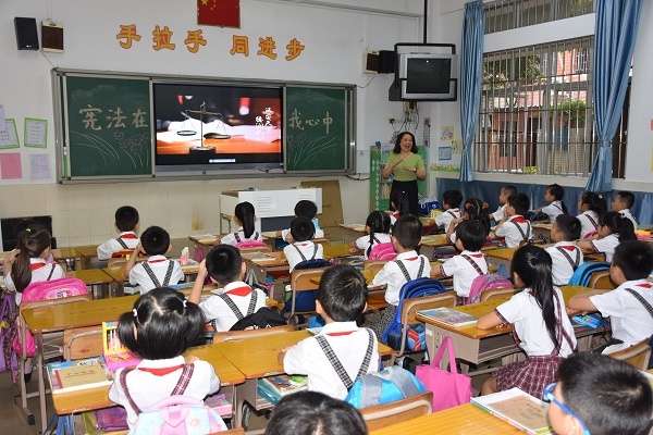 为了加强学校法制建设,提高学生法律意识,预防未成年人犯罪,日前,石岐西厂小学举行了以“宪法在我心中”宪法教育大课堂活动。