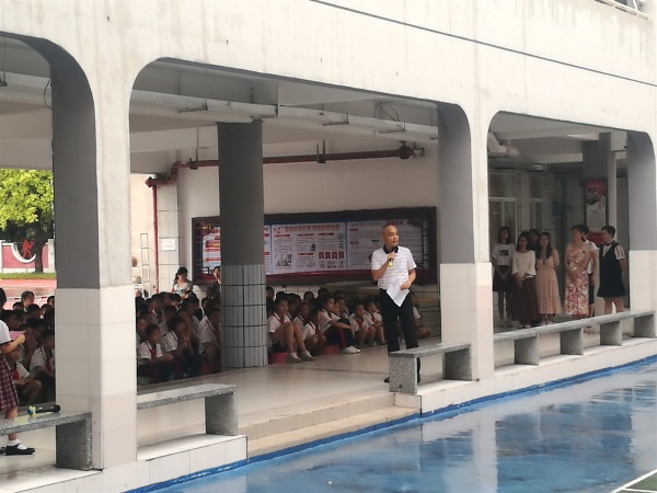 第二项梁校长致词,梁校长在讲话中回顾了石岐第一城小学上学年取得的一系列可喜的成绩,让大家看到了累累的硕果,接着校长又作了题为《热爱生命 积极锻炼》的致辞,用实际溺水案例告诉学生身体健康和生命安全的的重要性,之后梁校长提到暑假期间学校进行了设施设备的规范完善,学生们在感叹的同时也沉浸在享受学校新环境中。梁校长还告诉大家除了学校更换了面貌,新学期学校也迎来了14位新教师,一一介绍后,学生们也用热烈的掌声欢迎了自己的老师,最后梁校长希望同学们积极主动阅读课外书,努力增长才干,锻炼能力,做一个关心生活、关心他人、关心未来的优秀少年!