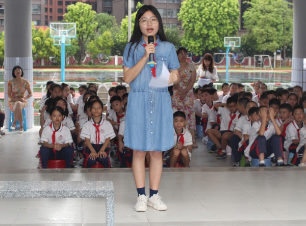 第三项新教师莫晴雯代表新入职的教师做了发言,莫老师代表全体师生表示在新的学期里好好学习、努力工作。