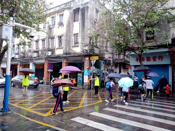 开学第一天,有一份爱叫作“护校”。这朴实的画面是浓浓的爱、是恬淡的诗,构成开学第一天石岐高家基小学雨中的风景。学校护校队用他们的实际行动,为孩子们上下学保驾护航,得到家长和学校的肯定。