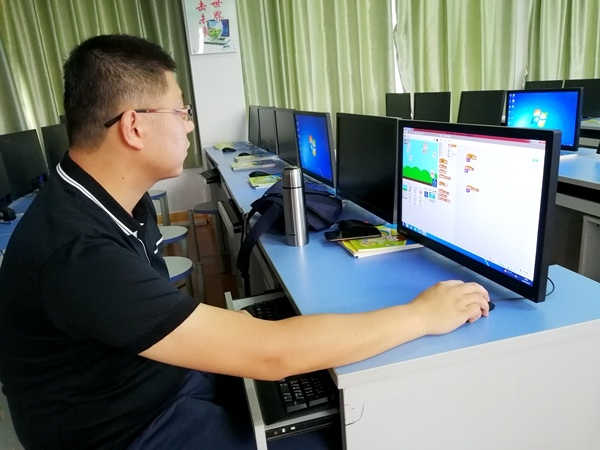 来自不同学校的年轻竞赛选手:郑启立、李豪、原灿星等三位老师,精心备战,各显风采,各具特色。在第一部分的上机测试中,中心教研组以四大知识板块:PPT制作、Flash趣味作品制作、Word和Excel综合应用、Scratch程序设计,选择其中1个板块进行命题。选手们紧围绕测试题,沉着冷静地思考,运用技术逐步设计,在规定的时间内,反复尝试,实现指定效果。