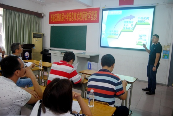 上机测试完成后,选手们又进入紧张的说课环节。说课选题和内容由选手自选,说课时间5分钟,为课前说课不必做教学反思,选题内容为广东科技出版社(中山版)《信息技术》教材内容,答辩时间2-3分钟 ,包括教育教学常见问题及教育教学理念。各参赛选手说课材料准备充分,教学方法灵活多样,知识结构清晰合理,课件简洁美观,教学风格极具个性化。选手们的精彩演绎、熟练的多媒体运用,镇定自如地阐述答辩,大方自然地教姿教态,充分展现出石岐区信息技术教师的风采。