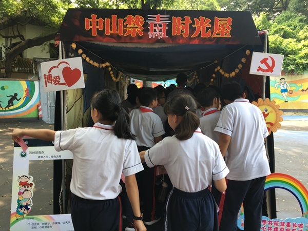 陈远华副所长借助生动的事例为全体师生讲解了什么是毒品,并讲述了毒品的种类,又通过身边的真实事例揭露了毒品的危害性。他多次强调同学们在生活中要提高警惕,千万不要因为一时大意酿成大错,同学们听后都深受感触,纷纷表示要远离毒品。接着中山市社会工作者协会的李俊杰带领全体师生一起观看反邪教与宪法教育视频,并通过禁毒知识有奖问答的环节,激起师生们的热情,同学们都争先恐后抢答问题,用自身行动参与禁毒宣传。