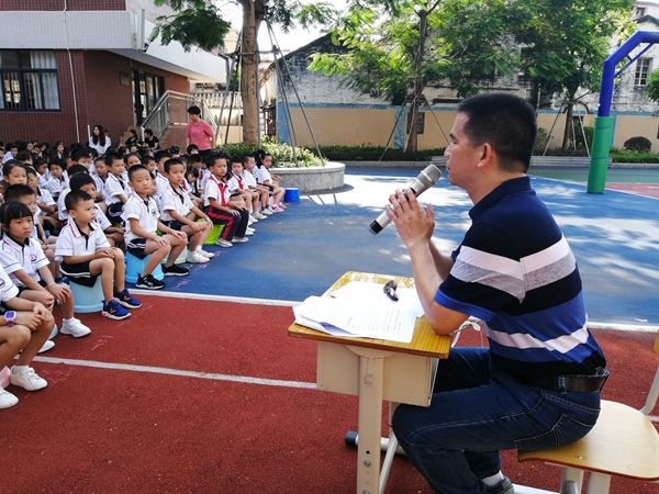 9月9日上午,石岐高家基小学召开了以“壮丽70年,奋斗新时代“为主题的爱国主义教育校会。会上黄荣胜校长从不同的角度讲述新中国成立70周年的伟大成就,鼓励孩子们勇于拼搏,奋发进取,努力成为对社会对国家有用的杰出人才。黄校长把一腔爱国之情抒发在自己激情洋溢的讲演中,使全体师生深受鼓舞。