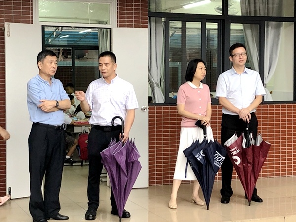 新学期开学第一天,石岐区党工委书记黄桂光同志在区党工委委员何健冰同志和区文体教育局局长彭宏亮同志、区教育事务指导中心主任周俊同志的陪同下,来到石岐高家基小学调研并指导工作。