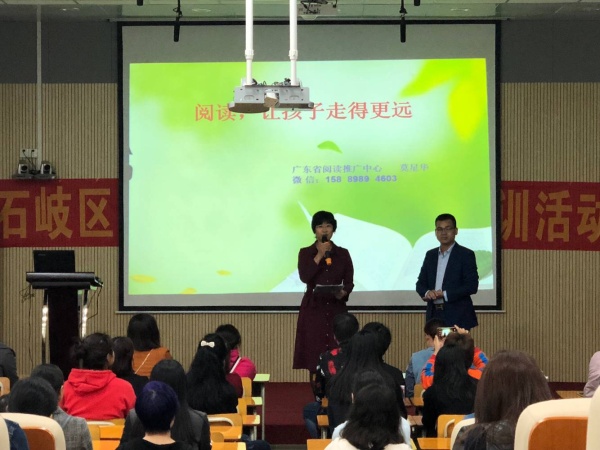 广东省青少年阅读中心副主任、情智阅读发起人莫星华老师给家长们做了《阅读,让孩子走得更远》莫老师给家长们讲述了阅读的意义。阅读,是孩子汲取知识和认识世界的途径;阅读,也是滋养心灵、优雅修养的重要途径。经典阅读给孩子的心灵予以全面的滋养。特别是在信息碎片化、流行化、庸俗化的今天,呵护孩子的童真、启迪心灵,培育成熟的心智,阅读是一条很好的途径。同时,莫老师给了家长们三点建议:1、营造氛围,以身作侧。2、分级阅读,尊重规律。3、互动分享,深度阅读。同时指出卡通漫画类的阅读给孩子带来负面的影响。