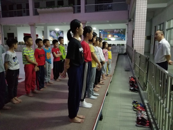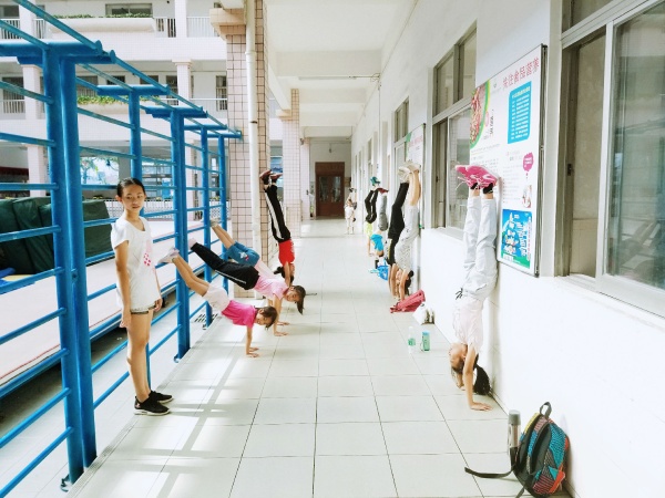 自8月份广东省第十五届省运会结束后,一批老队员向学校提出退役的申请,只剩下本校的8名队员。9月份中旬,在学校体育主管梁主任的发动和组织下,通过孩子的自主报名,从二至五年级中选拔出30多名孩子进行训练,使技巧队伍得以充实壮大。可接下来马上就要参加10月21日在江苏沛县举行的全国技巧赛了,短短的一个月时间里,蔡陈老师牺牲国庆假期的休息,带领队伍练基本功,编排舞蹈动作,晚上还得加班选编音乐......突破各种困难,学校技巧队如期到达江苏沛县参加本次全国赛。