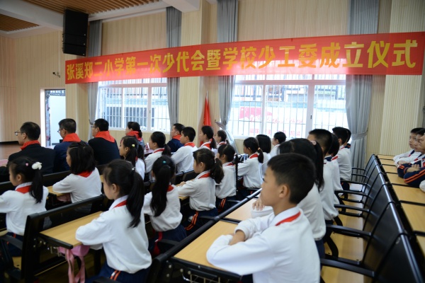 中国少年先锋队,简称“少先队”,是中国少年儿童的群众组织,是建设社会主义和共产主义的预备队。为了让少先队员们更加清楚地明白自己的权利和义务,更加深刻地认识到自己肩上神圣而光荣的使命。2019年12月27日下午,中国少年先锋队石岐张溪郑二小学第一次代表大会暨学校少工委成立仪式隆重举行。石岐区团委专干周嘉敏、学校法制副校长,宏基派出所民警黄存荣、康华社区主任张月桃、张溪郑二小学戴织校长、李振华副校长、学校家委代表、学校辅导员代表以及学校少先队员代表参加了此次会议。